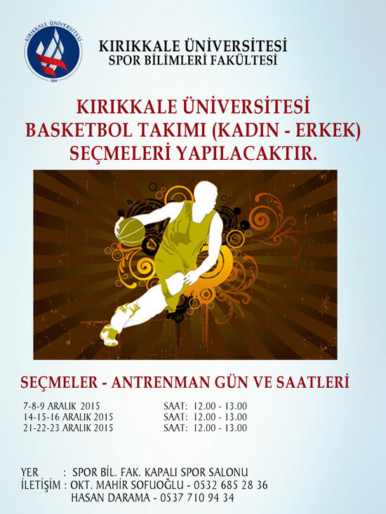 • Kırıkkale Üniversitesi Basketbol Takımı (Kadın - Erkek) Seçmeleri Yapılacaktır